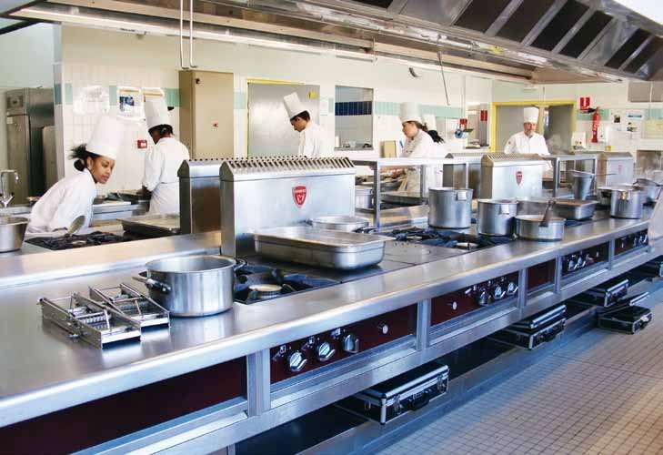 La dénomination Funay-Hélène Boucher résulte de la fusion des deux établissements avec un seul directeur, mais les bâtiments restent séparés. Le premier forme plutôt aux métiers du bâtiment, le second aux métiers de service, dont l’hôtellerie-restauration. La cuisine rouge d’initiation et la cuisine bleue d’application (ou pédagogique) du lycée Hélène Boucher ont été restructurées l’une après l’autre. Les travaux ont mobilisé deux périodes de vacances scolaires fin 2009 et début 2010. C’est la Région Pays de la Loire qui a investi en totalité pour les deux cuisines fonctionnant l’une au gaz, l’autre en énergie mixte (et pour le laboratoire pâtisserie refait en septembre 2011). Le projet a notamment été mené avec le bureau d’études spécialisé Conceptic’Art et l’installateur Benard (agence du Mans). Les changements ont été réalisés essentiellement sur la cuisson, pas sur les inox et le froid. «Le bâtiment date de 1992», explique Pascal Duguet, chef de travaux au lycée. Les cuisines étaient déjà équipées en Charvet, la marque qui a été retenue pour le renouvellement. «La Région Pays de la Loire nous a bien suivis sur le projet», apprécie-t-il. «Nous avions plusieurs possibilités, mais il fallait faire dans