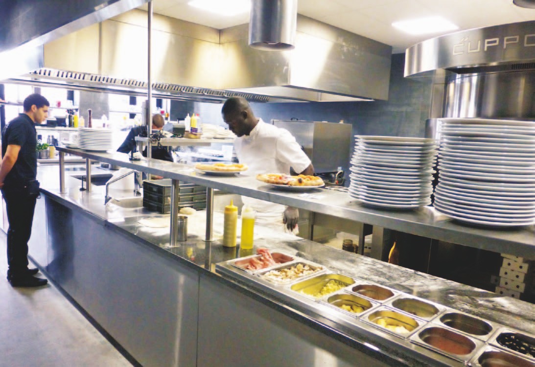 Thierry et Christine Di Litta, ex-propriétaires pendant vingt ans du restaurant Le Verdi, boulevard des Brotteaux à Lyon 6ème, ont racheté en 1997 la Brasserie de l’Helvétie en 1997, située sur ce même boulevard, et devenue Le Ness en octobre 2001. Pour redonner un coup de jeune à leur affaire, ils ont investi dans la salle qui offre désormais un profil new-yorkais et branché. « Il fallait aussi absolument refaire la cuisine, devenue obsolète, afin qu’elle intègre les nouvelles normes en vigueur : hygiène, sécurité, électricité, etc », souligne Vincent Bretonnière de Dima Protechnic, qui a suivi de près le dossier, avec l’architecte lyonnais Jérémy Rochet. L’installateur a dû relever le défi du chantier record, lancé par les époux Di Litta. Sur trois semaines de travaux, cinq jours ont été consacrés à l’installation de la cuisine. « C’est la première fois que nous traitons ce type de dossier, en l’occurrence, concevoir une cuisine en épi et traversante, pour