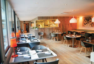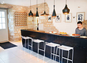 Jardins du Prieuré. Il faisait initialement partie du projet afin notamment de stimuler l’accueil de séminaires, mais n’a pu être mené à bien en raison d’un litige avec le promoteur. En attendant, le restaurant s’appuie sur sa proximité géographique avec les faïenceries HB Henriot mais aussi l’école de broderie d’art Pascal Jaouen, qui influencent l’identité visuelle d’un aménagement intérieur imaginé par la décoratrice Marie-Hélène Kergoat. Représentant un investissement total de