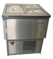 bac, d’un système « niveau constant » fonctionnant avec des ressorts parfaitement équilibrés de part et d’autre des bacs. Le froid est réalisé avec un groupe frigorifique, évaporateur ventilé avec variateur, gaz R404, régulation électronique, bac de ré-évaporation des condensats. L’accès est facilité pour le nettoyage grâce au dessus ouvrant et les roulettes sont proposées en option. C’est un matériel de maintien en température, les produits déposés doivent être en température +2°C.