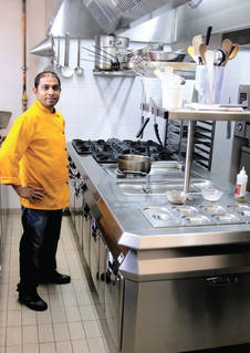 dans un cadre à la fois chic et convivial. L’accès est original, par un escalier ancien qui mène au premier étage : le restaurant Bank a conservé quelques éléments d’architecture et de décoration (cheminée, parquet, moulures, poteaux porteurs…) de l’ex-bâtiment de la Banque de France, monument classé. Il a été réalisé dans les anciens appartements, projet mené par Subhath Thudawe, chef de cuisine et propriétaire avec son épouse