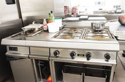 second, David Nadeau. La zone cuisson est ainsi dotée d’un piano Capic, avec 4 feux vifs et une friteuse, et de deux VarioCooking Multificiency Frima. Le modèle 112T, en 2 x 14 L, est idéal pour gérer les petites quantités (menus spécifiques, animations…) tandis que le modèle 211+, en 100 L, traite le gros de la prestation. Particularité intéressante : « Contrairement à d’autres marmites, la vidange se fait grâce à un tuyau à l’arrière. Il n’y a donc plus besoin de mettre un caniveau de sol devant. Cet équipement peut ainsi s’ajouter facilement dans