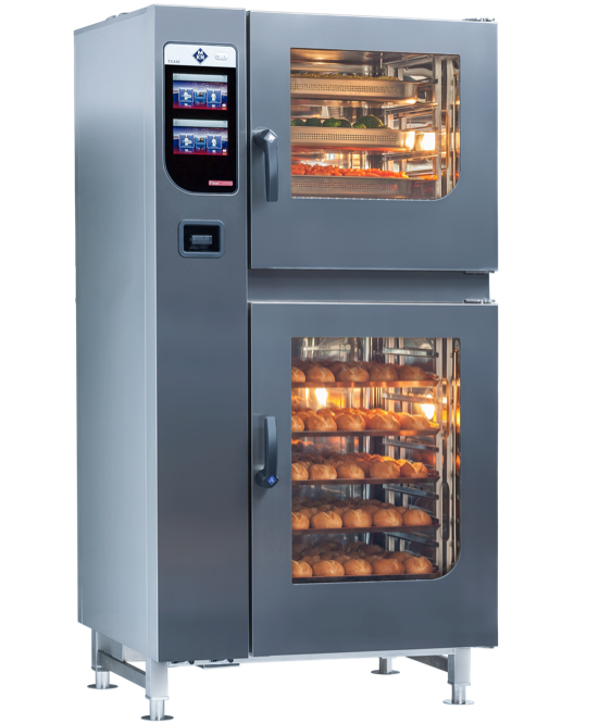 MKN présente le FlexiCombi Team, un nouveau four mixte disposant de deux enceintes de cuisson dans un seul et unique appareil. Deux modes de cuisson peuvent ainsi être travaillés par l’utilisateur de manière flexible : des viennoiseries peuvent par exemple cuire dans l’enceinte inférieure, pendant que des légumes cuisent à la vapeur dans l’enceinte supérieure et ce, au même moment – de quoi réaliser un menu complet en peu de temps.
