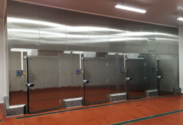 4 Tunnels TCI 600 Double Caisson ont été installés dans les cuisines de la société, avec des performances validées en essais réels à pleine charge avec 2 chariots de 360 barquettes de 1,8 kg chacune, soit 1 300 kg/tunnel refroidis de +90C° à 10C° en 84 mn sans surgélation en surface.