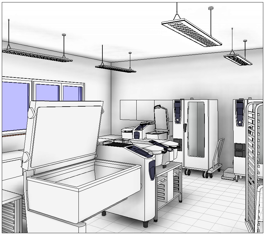 En plus des éléments géométriques en 3D, chaque modèle intègre toutes les informations techniques (exigences de raccordement d’électricité et d’eau, débits requis, température des eaux usées, espaces mini nécessaires) afin de faciliter le travail de conception de cuisines professionnelles.