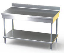 La table sur mesure permet à chaque restaurateur d’adapter son mobilier aux dimensions de sa cuisine. Dans un milieu où rentabiliser l’espace est un véritable défi, la flexibilité de ce produit devient très utile. Le modèle se décline avec et sans étagère sur le piétement, ainsi qu’en table centrale ou adossée. Les longueurs disponibles varient de 500 à 3800 mm, pour une profondeur de 600 ou 700 mm et une hauteur de 900 mm. Intégralement conçue en acier inoxydable, avec un dessus doublé mélaminé, la table répond parfaitement aux normes d’hygiène et aux besoins