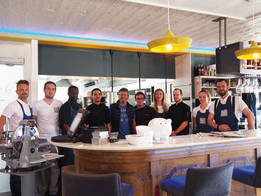 de propriétaires Aurélie et Yohann Lagord ont misé sur un cadre élégant et une carte de qualité. « Nous voulions ouvrir un bistro chic tout en restant dans la simplicité », indique Yohann Lagord, cuisinier de métier et reconverti dans la gestion de projets immobiliers sur l’île. « Nous avons eu l’opportunité en 2016 d’acquérir le fonds et les murs de ce bel emplacement les pieds dans le sable. C’était alors une rhumerie avec un petit snack, quelque chose de très simple. » Le projet de restaurant en tête, le couple s’est alors donné un impératif : « La condition sine qua none fut de ne pas avoir à y travailler compte tenu de nos autres impératifs professionnels. J’ai proposé à mon neveu, Renaud Dupeux, alors en cuisine à la Folie Douce à