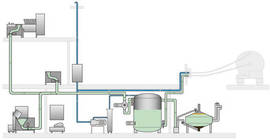 Ce système de traitement sous vide permet de prendre en charge les déchets directement à la source. Concrètement, déchets alimentaires, aliments périmés, déchets de production ou encore graisses sont tout d’abord jetés dans les différentes stations d’aspiration installées dans la cuisine. De là, ils sont acheminés dans un réservoir, où un mélangeur permet de les homogénéiser et de réduire leur volume de 30 %.