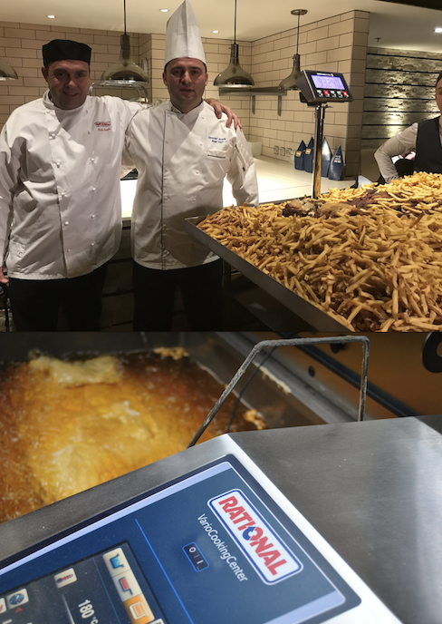 Les chefs du Resorts World à Birmingham (Royaume-Uni) sont entrés au livre des records Guiness World Record le 9 février dernier, en produisant la plus grande portion de fish & chips du monde. Assistés de l’équipe anglaise de Rational lors de la programmation du VarioCookingCenter 311 qui a frit un flétan de 27,83 kg en un peu plus de deux heures (précédant la cuisson d’une importante quantité de frites), la portion cuite affichait un poids de 54,99 kg, battant le record de 7kg. «Nous sommes ravis d’avoir contribué au succès du Resorts World», déclarait Graham Kille, directeur des ventes techniques à Rational Royaume-Uni. «La performance du plus grand modèle de notre gamme de VarioCookingCenter allié à sa précision en font l’appareil multifonction idéal pour un repas record».