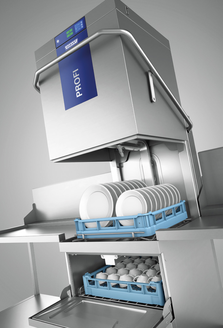En effet, annoncé comme une « première nouveauté mondiale », le Two-level-washer est un lave-vaisselle à capot avec une zone de lavage supplémentaire. Dès lors, un second cycle peut être lancé simultanément dans la partie inférieure offrant ainsi au Two-level-washer une capacité deux fois supérieure par cycle de lavage. Cette solution compacte, qui ne nécessite pas plus d’un espace de lave-vaisselle classique, a été pensée notamment pour les services en période de pointe où un grand nombre d’éléments de vaisselle et d’ustensiles doit être lavé de différentes façons. Avec le Two-level-washer, tandis que des assiettes en porcelaine sont lavées au niveau supérieur, l’espace de lavage inférieur permet de laver en même temps des soucoupes, des poêles, des casseroles, des couverts ou encore des saladiers encrassés grâce à un programme de nettoyage spécifique. Ce dernier, en proposant un temps de lavage prolongé, va intégrer l’effet de trempage dans son processus permettant ainsi d’éviter le prélavage manuel. Pendant ce temps, jusqu’à trois