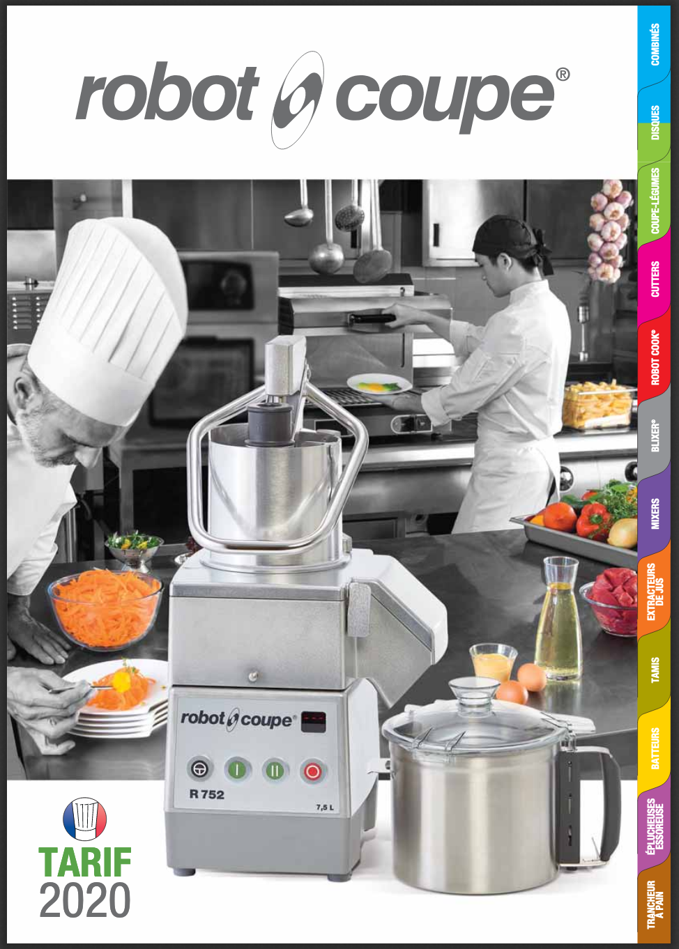 Robot-Coupe lance son nouveau Tarif 2020, applicable au 1er janvier prochain. Ce support, idéal pour faire découvrir les gammes de produits et solutions de la marque, dévoile une nouvelle présentation à la fois plus simple et plus didactique, avec davantage d’illustrations, ainsi que de nouveaux contenus concernant l’entreprise, ses services et les multiples applications réalisées par ses machines. De nouveaux produits font également leur entrée au sein du Tarif 2020, comme la nouvelle gamme de 13 modèles de grande capacité 5.9 L et 7.5 L en Combinés, Cutters et Blixer ; le nouvel Extracteur de Jus Automatique J 80 Buffet ou encore le nouveau Batteur Mélangeur RM 8 avec son galet pétrisseur breveté et ses nouveaux outils en inox, toujours plus silencieux.