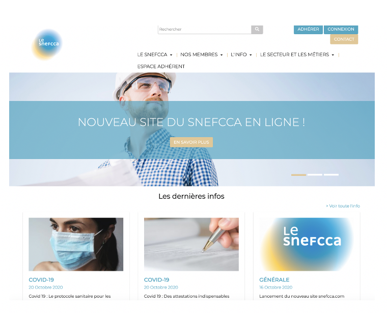 Le nouveau site du Snefcca (www.snefcca.com) est désormais disponible ! Plus clair et plus moderne, il a été entièrement repensé afin d’offrir aux internautes et aux adhérents une navigation simplifiée et intuitive afin que tous obtiennent rapidement des réponses à leurs demandes. Après plusieurs mois de réflexion, de création et de développement, le site offre une toute nouvelle expérience utilisateur à travers une présentation détaillée du Snefcca, une introduction sur le secteur et ses métiers/qualifications, les actualités liées mais également un agenda informatif et collaboratif, un annuaire en ligne (avec map interactive et géolocalisable mise à jour en temps réel) et un espace « Adhérents ». Ce dernier, constitué d’entrées par profils (dirigeant, responsable d’agence/de secteur, commercial, ressource humaine et/ou comptable, technique) permet un accès direct à la fiche personnelle de chacun à la base documentaire, modèles administratifs et outils utiles, ainsi qu’aux fichiers partagés des instances Snefcca .