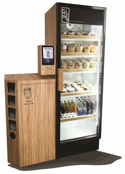 Fricots, une start-up lyonnaise créée en 2019, a développé un frigo connecté qui propose aux entreprises des plats locaux dans des bocaux en verre réutilisables.
