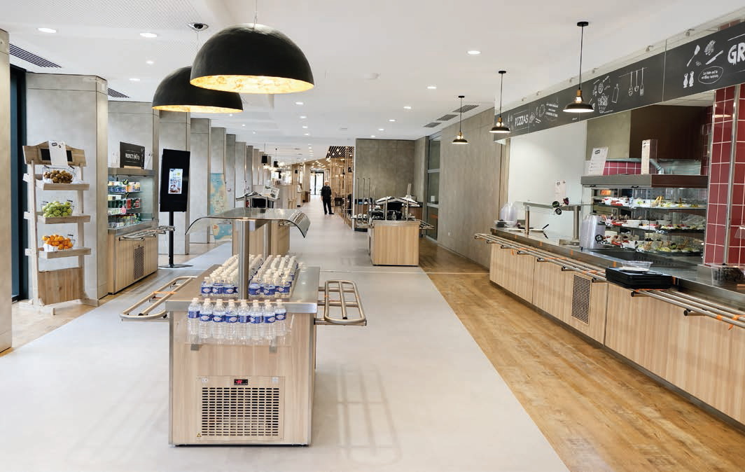décline une prestation qualitative et variée, gérée par la société Ansamble. Le tout dans un univers technologique bien pensé, pour une moyenne de 700 repas par jour. Tour d’horizon dans les divers espaces – de la cuisine au sous-sol – pourvus de 300 équipements !