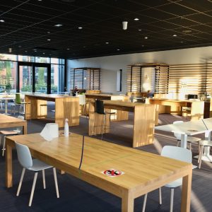 d’entreprise, concédé à Elior, puis Eurest, était prévu pour 500 couverts par jour. Or, 750 couverts par jour ont finalement été atteints. Devenu trop petit et obsolète, tant au niveau de la salle à manger que de la distribution et de la cuisine, Biomérieux a opté pour une totale reconstruction. Ainsi, depuis mai 2019, la cuisine principale permet