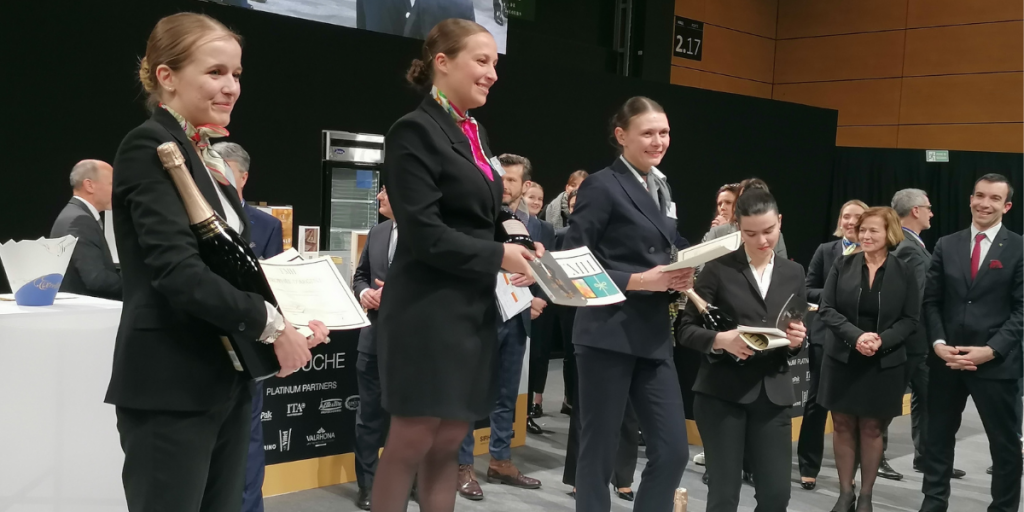 Au terme d'une après-midi d'épreuves, c'est Diane Blanch (maître d’hôtel au Beau Rivage Palace à Lausanne, restaurant Anne-Sophie Pic) qui a remporté la finale du Trophée du Maître d'Hôtel. Les 6 finalistes sélectionnés en octobre dernier ont été départagés après avoir participé à 5 ateliers.