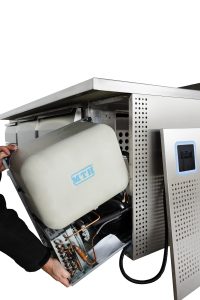 Sa maintenance se veut aussi facilitée, le groupe étant extractible sur glissière. Une possibilité d’échange standard est possible en cas de problème technique sur la partie froid.