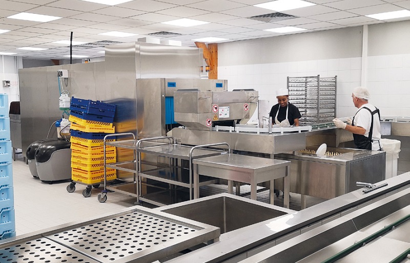 d’accueil et sert en moyenne 2 200 repas, uniquement le midi (contre environ 1 800 auparavant). Il propose un self, avec deux lignes identiques pour améliorer les flux, une salle végétale (offre végétarienne, décoration « green ») et une cafétéria (avec de la restauration rapide). Cette dernière dispose d’un accès extérieur différencié du RU. Les étudiants peuvent consommer un repas au tarif social de 3,30 €, voire 1 € pour les boursiers (et précaires). Des constructions modulaires permettent d’accueillir du matériel de cuisine, car le site n’était pas