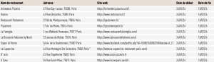 Il s'agit de la liste des restaurants qui participeront aux activités promotionnelles :