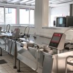 d’années sans avoir été concrétisée, la cuisine centrale de Baudricourt (Paris, 13e) a pu voir le jour grâce au concours de la maîtrise d’œuvre de la Ville de Paris. « À la fusion de la mairie de Paris et de la Ville de Paris, il a été demandé aux Caisses des Écoles des différents arrondissements de reprendre les collèges autonomes en gestion. Il y avait donc un besoin de capacité de production supplémentaire, notamment dans notre arrondissement, pour les collèges autonomes en portage. La cuisine a été construite à la place d’anciens réfectoires en préfabriqués pour les écoles », explique Denis Volle-Frontera, responsable du service Alimentation et Qualité à la Caisse des Écoles du 13e arrondissement de Paris.