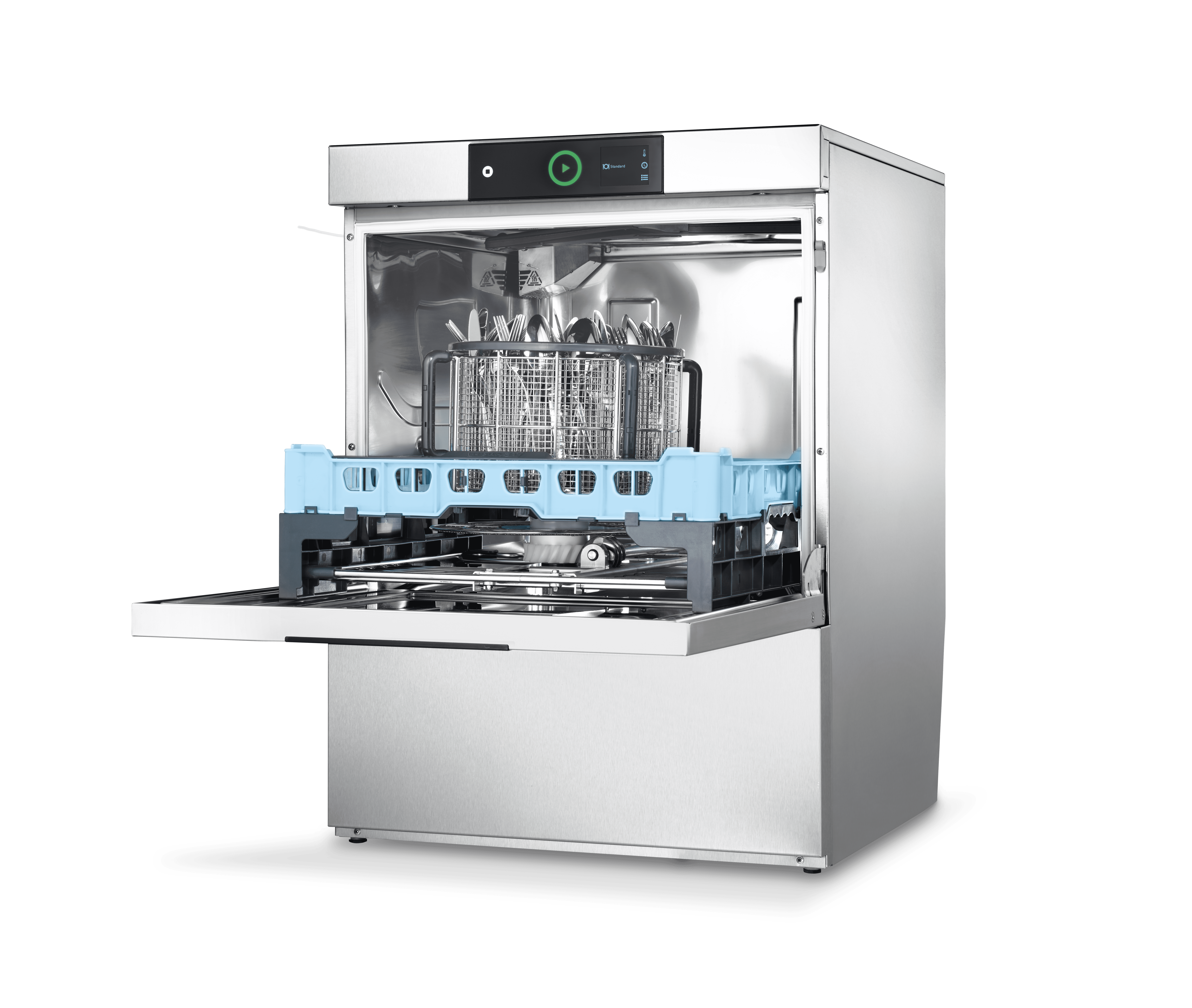 Pour ce faire, le lave-vaisselle détient un panier à couvert rotatif et amovible empêchant l’eau de s’accumuler. Son action rotative évite également le chevauchement des couverts. Par ailleurs, le FP Premax ne consomme que 0,4 litre d'eau par casier.