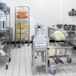 Pouvant couper jusqu’à 1 800 kg de fruits et de légumes en 1h, il se nettoie désormais facilement au jet d’eau et ses 3 goulottes peuvent passer au lave-vaisselle : idéal pour les collectivités et cuisines centrales, entre autres.