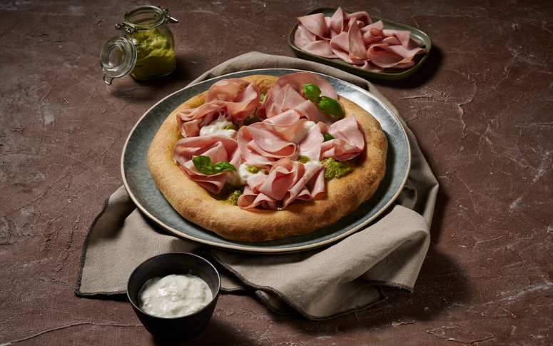 Pizza à la Mortadella Bologna IGP et aux pistaches