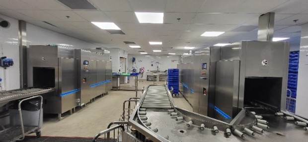 Pour équiper cette laverie centralisée, le food market a choisi le lave-vaisselle à avancement automatique M-iQ K de Meiko. Ce dernier répondait au cahier des charges fixé par Boom Boom Villette : une excellente qualité de lavage, une grande rapidité, une ergonomie et un confort pour les opérateurs. Il est également très peu énergivore. Deux lave-vaisselle à avancement automatique ont ainsi été installés, assurant un roulement tout au long de la journée. Dotés d’une fonction prélavage, les deux équipements possèdent également un condenseur récupérateur d’énergie. Une machine dédiée au lavage des verres et couverts comporte également un osmoseur. Meiko a accompagné le food market, formant 15 utilisateurs, installant et réglant les deux machines, qui sont en service depuis maintenant six mois.